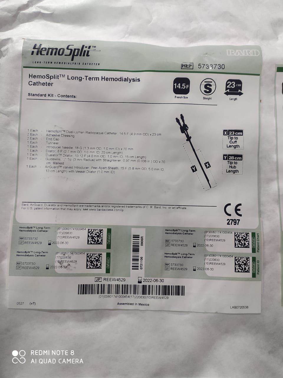 HemoSplit Долговременные катетеры. Bard 14.5-23